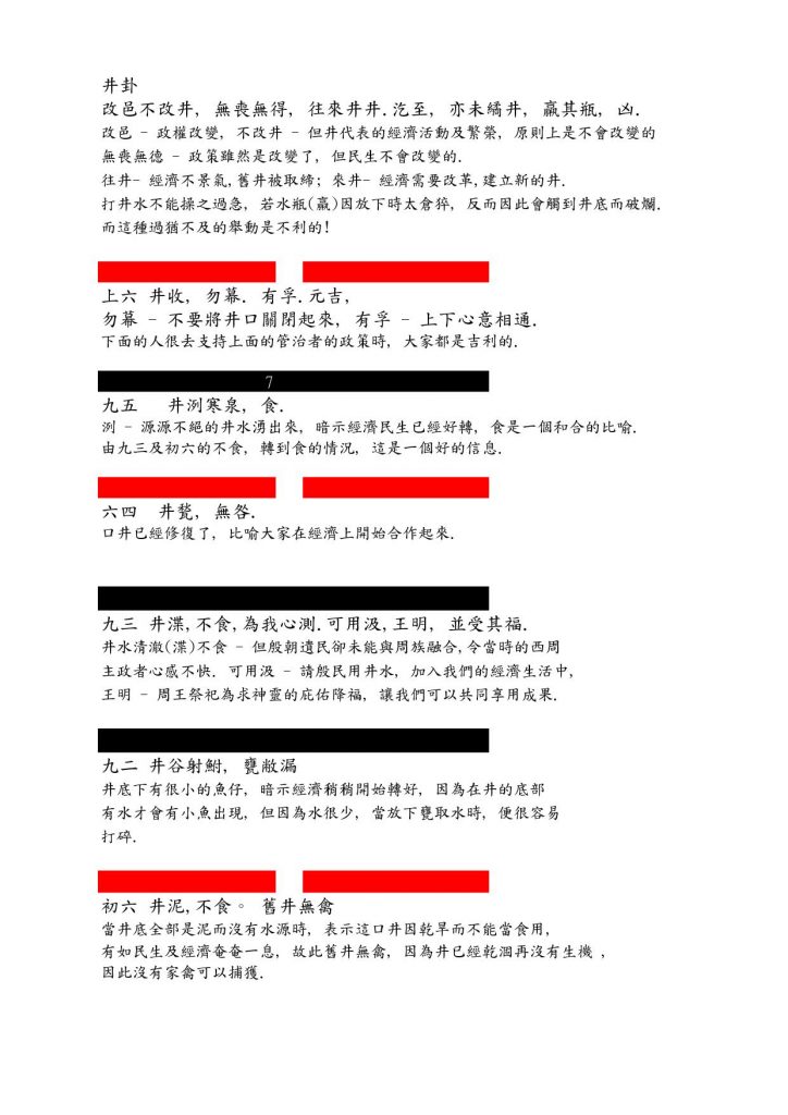 – 井卦由上坎下巽組成,坎象徵水與險,巽象徵風與流動,卦辭「改邑不改井,無喪無得,往來井井」強調政權可以更替,但民生經濟的根本不應改變。