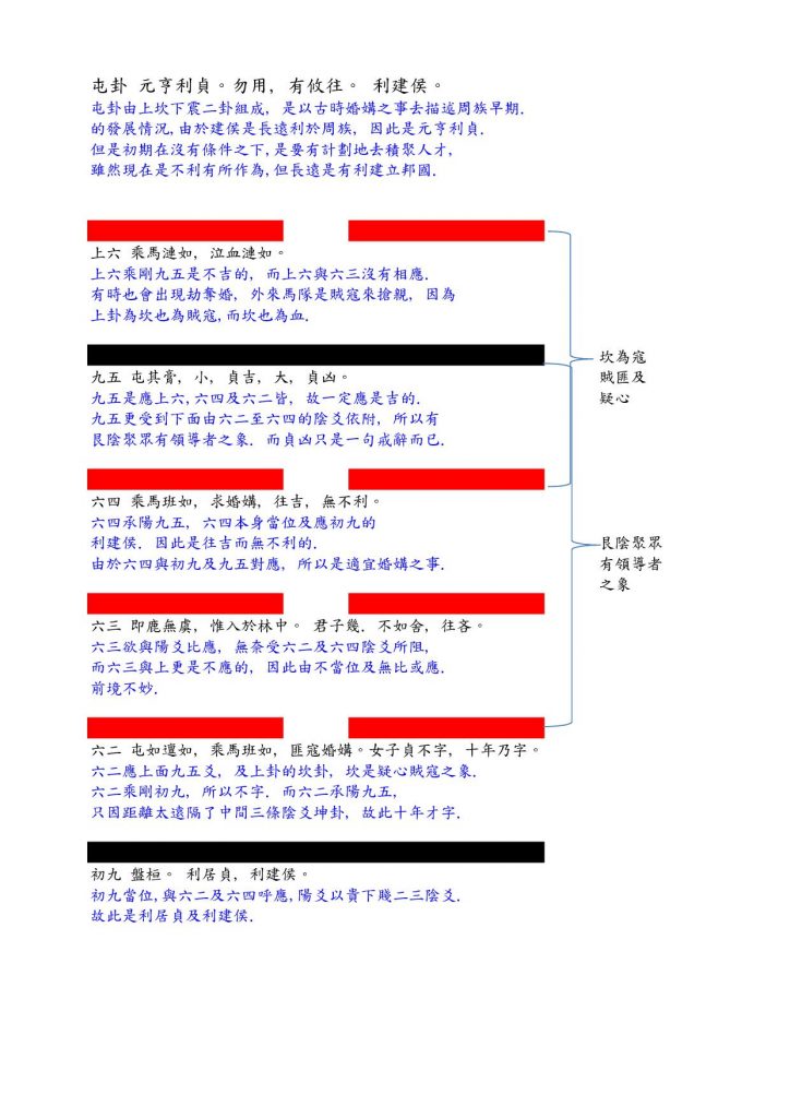 o 六二爻:「匪寇婚媾。女子貞不字,十年乃字。」描繪女子不願嫁,反映通婚困難。