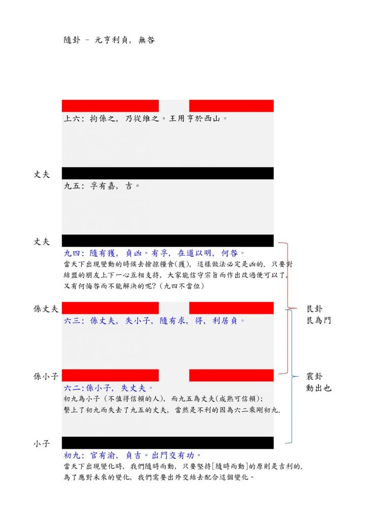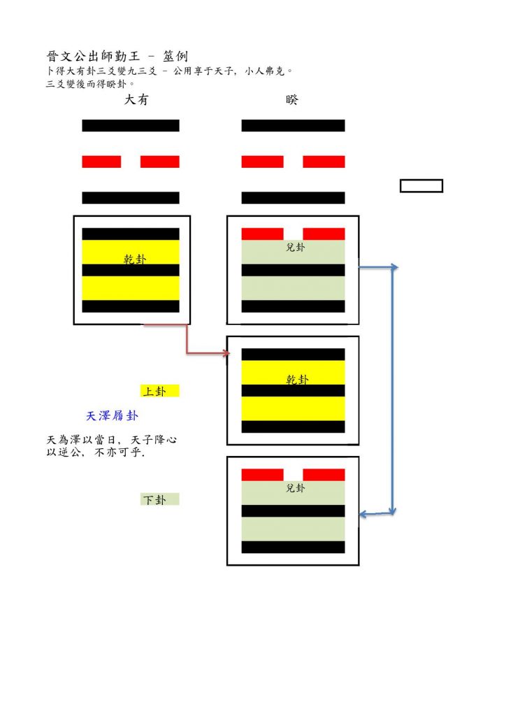 而兩支卦是互有關聯, 因為履卦是文王被囚時的背景, 而小畜卦是他返回周原後的策略, 情況與越王被俘後, 後被放回越國後的勵精圖治故事十分相像。