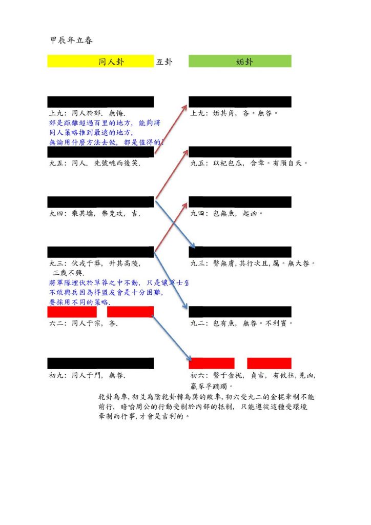 不過,在未來三個月的競選時間,可能會出现变數或特發事件,將不利于特朗普,因為九三爻变下為臨卦,上面四條陰爻對下面二條陽爻,因下面乾卦卻变為兌卦,兌為口也為言,可會是失言而敗?