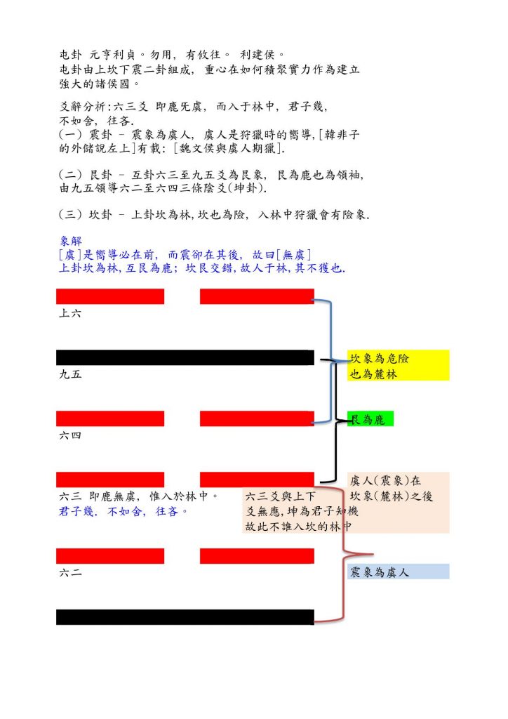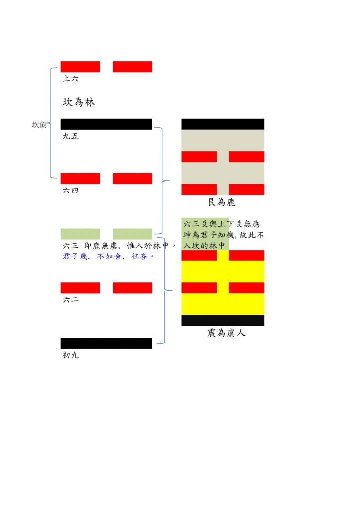 (四) 坤卦- 六三爻在坤的第二爻, 上下爻皆陰爻無應,與上六爻也無比應。故此君子知機,不如舍避,不入林中。