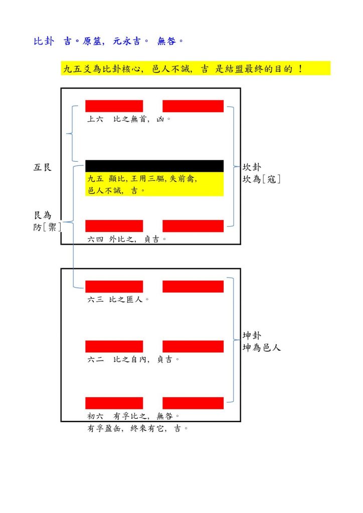 及至比卦它的上卦也是坎象,而比卦的比盟與前面屯与需二卦的結盟及禦寇息息相關 !