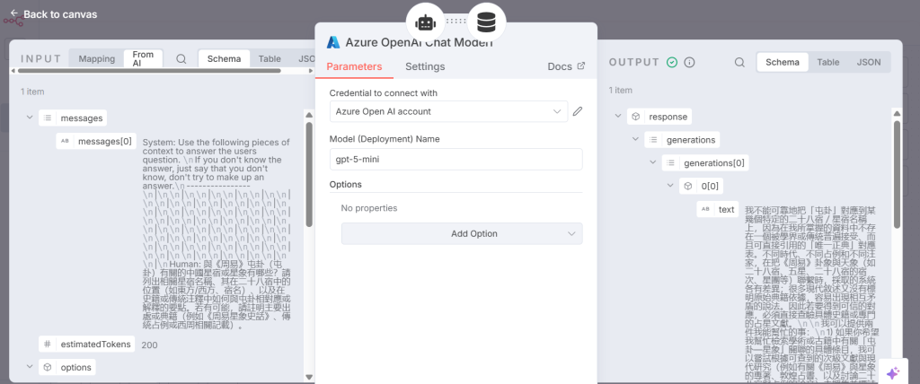 Step 8 Apply Azure OpenAI chat model again to deliver the message back to chat.