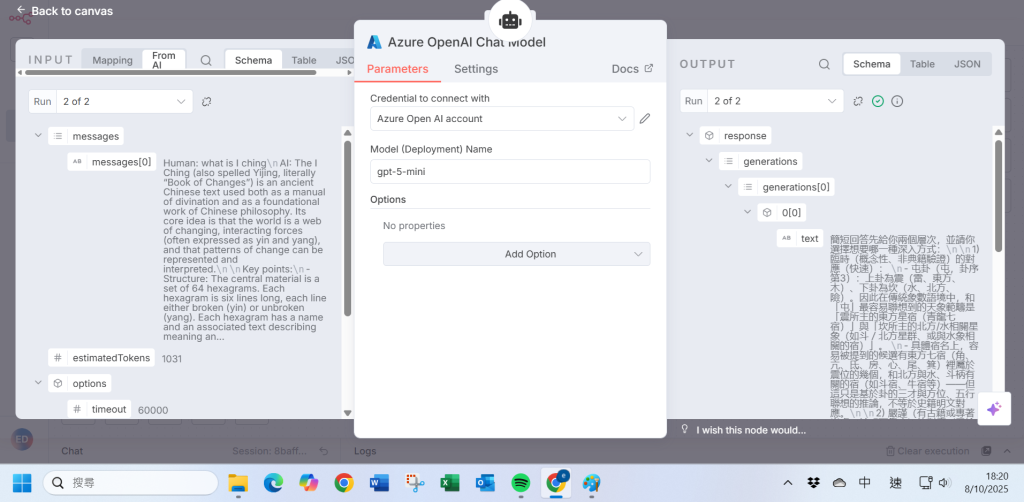 Step 5 Azure OpenAI Chat Model to access the “message ” with gpt-5-mini
