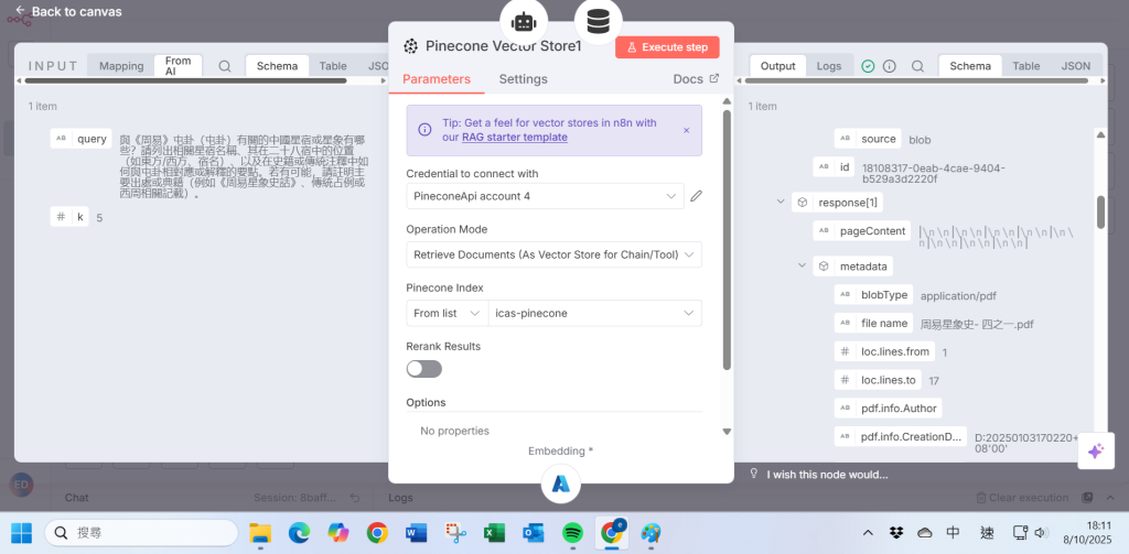 步驟 4 Pinecone 向量資料庫以操作模式檢索文件