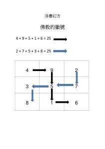 及右上至左下: 2 + 7 + 5 + 3 + 8 =25。其形態似佛教佛象中的符号 。